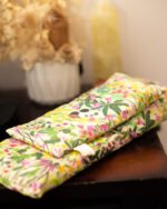 Double layered with a washable cotton cover for added comfort and an upcycled cotton pillow filled with organic Australian grain, dried flowers and essential oils.Â